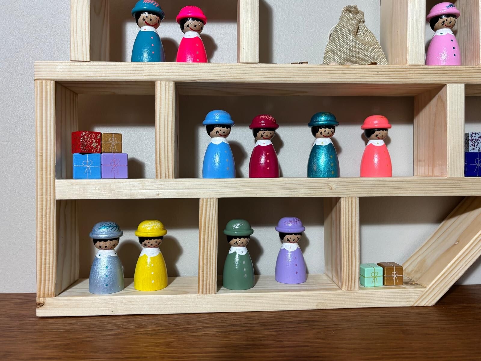 Zelfgemaakte houten stoomboot gemaakt van vuren hout, afgewerkt met blanke beits. Boot wordt geleverd exclusief pegdolls!